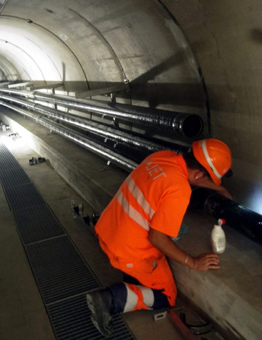 Pour l’acheminement de câbles, SAJET propose la technologie FRE. Il s’agit de tubes – en époxy renforcé de fibres de verre composites (FRE) – pouvant être installés en souterrain et également hors sol.